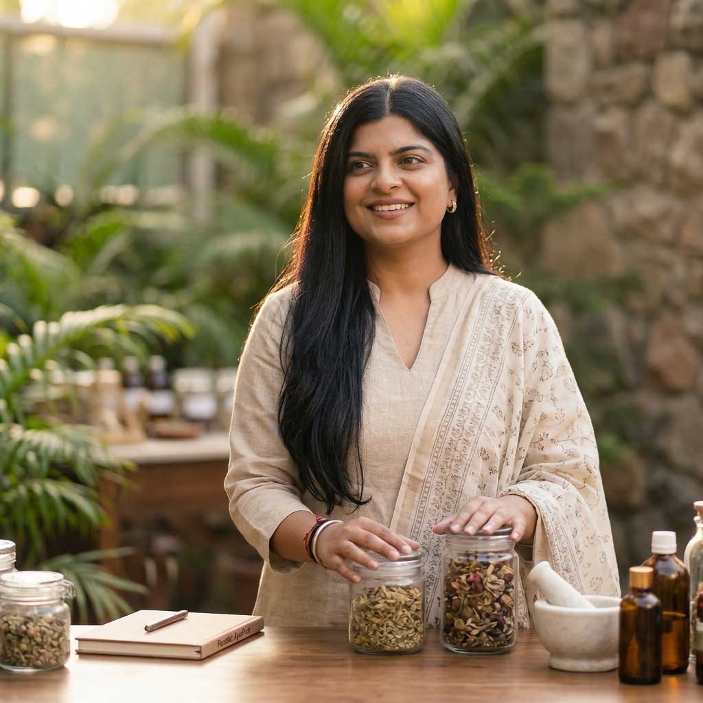 Over the next 2–3 years, I underwent intensive, hands-on training in ayurveda, formulation science, and manufacturing — particularly in ayurvedic cosmetics and nutraceuticals.