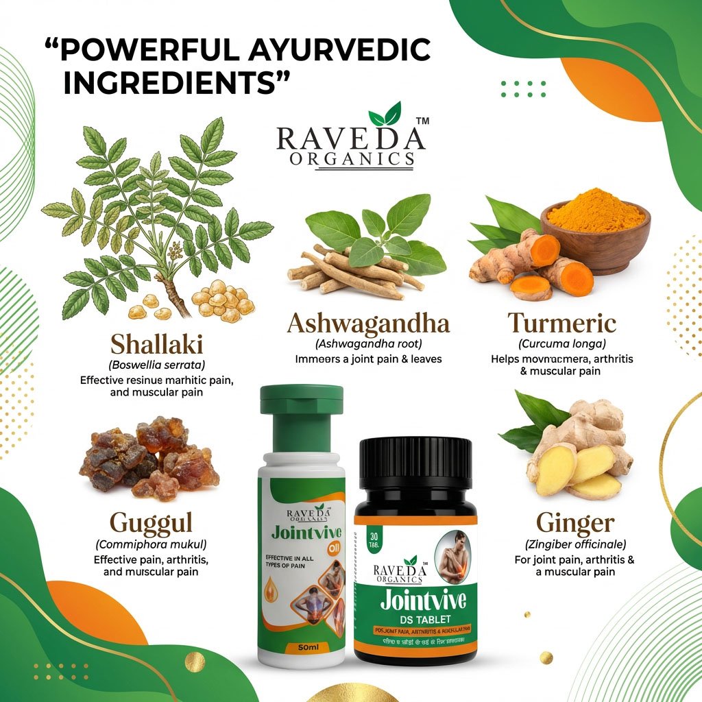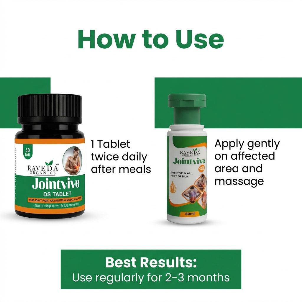 Raveda Organics Jointvive Combo is a powerful Ayurvedic combination designed to provide fast pain relief externally and long-term joint strength internally.