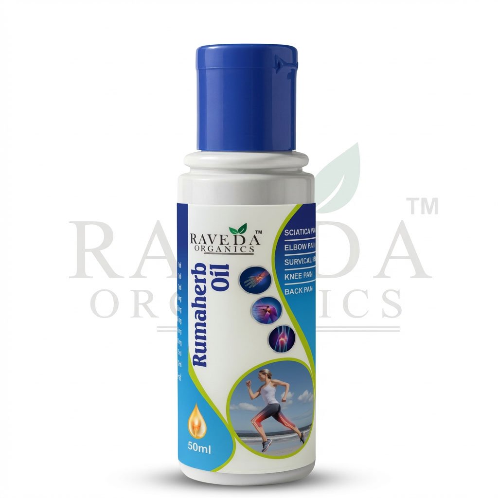 Raveda Organics RumaHerb Oil ek fast-acting Ayurvedic pain relief oil hai jo joint pain, back pain, knee pain, cervical pain, elbow pain aur sciatica me effective relief deta hai. Herbal oils ke powerful blend se bana, yeh pain ko naturally soothe karta hai.