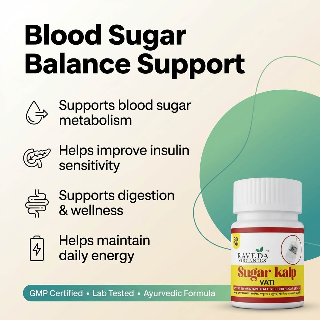 Sugar Kalp Vati – Ayurvedic Blood Sugar & Metabolism Support (30 Tablets) | Raveda Organics