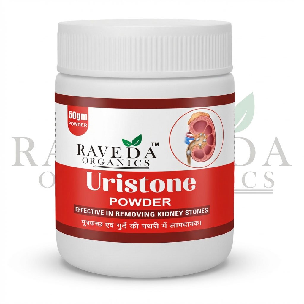 Raveda Organics Uristone Powder ek powerful Ayurvedic formulation hai jo kidney stones (गुर्दे की पथरी) ke management, urinary tract health aur urine flow ko support karta hai. Natural herbs se bana, yeh kidney cleansing aur pain relief me madad karta hai.